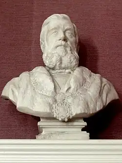 By the time the Mercer Art Gallery opened in Swan Road in 1991, its collection already numbered at least 1,000 works,[2] and had been accumulated over some time. For example, in 1904 the Holroyd bequest gave Harrogate Corporation the works of Thomas Holroyd, plus Holroyd's art collection including sculptures by W. J. S. Webber. Some of Webber's busts remain in the collection, along with a few of Holroyd's paintings, but Holroyd's heavily-carved, wooden photographic props and Webber's heroic marble sculpture Warrior with Wounded Youth are missing, the latter last seen in Harrogate Library before 1930.[14] The Warrior sculpture was last recorded with Sloan's auctioneers in 1998, and then for sale again in Miami.[32] However the 1,000 items inherited by The Mercer still include the Kent Collection of Antiquities, which Harrogate Council received as a donation in 1968.[2]