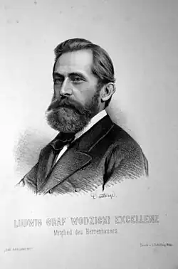 The Länderbank was founded on 11 November 1880 as a part-owned subsidiary of Paris-based Union Générale, first chaired by Galician aristocrat Ludwik Wodzicki.[1] Union Generale's promoter Paul Eugène Bontoux intended it as a conservative Catholic project against the financial power of the Jewish Rothschild family which led Austria-Hungary's largest bank, the Creditanstalt. In 1881 it sponsored an affiliate in Hungary,[2] the Bank of the Hungarian Lands (German: Ungarische Länderbank, Hungarian: Magyar Országos Bank; sometimes also referred to as Ungarische Landesbank), which however collapsed in 1887.[3]