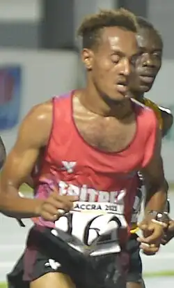 Merhawi Mebrahtu (born 21 September 2003) is an Eritrean long-distance runner. He won a silver medal in the 5000 metres at the 2022 World Athletics U20 Championships.[1] He placed 17th in the 5000 metres at the 2022 World Athletics Championships and 19th in the 10,000 metres at the 2023 World Athletics Championships.[2][3] At the Paris Olympics in August 2024 10,000 meter run he finished in 15th place in the final with a time of 27:24.25.[4]