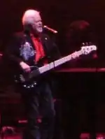 A tenor/countertenor vocalist well into adulthood, Merrill was either lead singer or co-lead singer (usually sharing duties with younger brother Donny) on almost all of the Osmonds' songs and co-wrote, along with older brother Alan, many of them.[2] Like the rest of his family, he is a member of the Church of Jesus Christ of Latter-day Saints. When Donny began to focus on his own career in the late 1970s, Merrill grew out his beard, let it naturally go gray,[2] and, along with his brothers, shifted to country music, placing singles on the country charts in the 1980s; he also had a single independent of his fellow Osmonds, a duet with session singer Jessica Boucher (younger sister of Savannah and Sherry Boucher), "You're Here to Remember (I'm Here to Forget),"[3] which peaked at number 62 on the Hot Country Singles chart in 1987.[4] Osmond announced his intent to retire from performing in 2022 and performed his last American show in April of that year, with a UK tour to follow.[5] Merrill's final show took place at the barn, Ringwood on January 19, 2023. Since then, he has performed a limited number of special engagements each year. As of early 2024, there were plans to have Nathan Osmond, one of Alan's sons, replace Merrill in certain Osmond enterprises, such as the family's Branson residencies.[6]