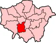 Merton and Wandsworth shown within London