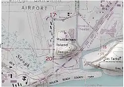 In 1941 the Army Corps of Engineers leveled most of Mescalitan Island to provide fill for a Navy airport.[5] That airport became part of Marine Corps Air Station Santa Barbara in 1942, and a few years later became the Santa Barbara Municipal Airport.