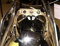 The KR175 used the standard Kabinenroller steering system, with a steering bar connected directly to the track rods of the front wheels, providing an extremely direct response best suited to small, measured inputs.[3] The KR175's steering bar was made from tubular steel. The gearshift lever, on the right side of the cockpit, had a secondary lever on it which operated the clutch.[2] The throttle was operated by a twist-grip on the left handlebar.[3] The foot brake pedal, which was the only pedal in the car, operated brakes on all three wheels mechanically, using cables. The handbrake lever operated similarly.[2]