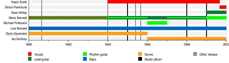 • Steve "Yak" Bennett – guitar (1990–1999), rhythm guitar (1999)