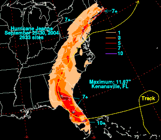 - ^ a b c David Roth (2006-12-30). "Rainfall Summary for Hurricane Jeanne". Hydrometeorological Prediction Center. Archived from the original on 2013-09-21. Retrieved 2008-07-06.