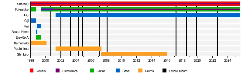 In a 2007 interview, Talbo-1 Fukusuke mentioned how they stopped with saying they were from the year 2005 as said year neared. The band apparently had thought they wouldn't still be around by the time 2005 rolled around. They split in 2009 for unknown reasons.