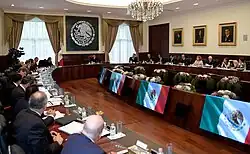 The Cabinet of Mexico is the Executive Cabinet (Spanish: Gabinete Legal) and is a part of the executive branch of the Mexican government. It consists of nineteen Secretaries of State and the Legal Counsel of the Federal Executive.