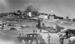 A number of Mi'ar's residents participated in 1936–1939 Arab revolt against British rule and mass Jewish immigration in Palestine, and the village became a center of rebel operations in the Galilee.[14] The rebels often opened fired on British troops passing near Mi'ar, damaged roads in the vicinity to render them impassable by the British authorities, cut electrical cables, and planted landmines to hit British vehicles.[14] One of the authorities' controversial methods of suppressing the revolt was the blowing up of houses in a village where there was support for rebels.[14] On 26 October 1938, two British battalions launched a raid against Mi'ar and began dynamiting the large houses of the village.[14] They then demanded Mi'ar's mukhtar (headman) to issue a call to the village's rebels to surrender their rifles or else the dynamiting would continue.[14] No rifles were surrendered and the British resumed their dynamiting of the village's homes.[14] Mi'ar was entirely destroyed for its alleged support of the rebels.[15][16] A New York Times reporter present during the destruction wrote, "When the [British] troops left, there was little else remaining of this once busy village except a pile of mangled masonry."[14]