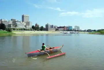 In later work, Arcega has examined colonialism, anthropological practices, migrant issues and cross-cultural exchange.[5][7][38] He expanded on his El Conquistadork performance-sculpture with Baby (Medium for Intercultural Navigation) (2011-12), a project in which he hand-crafted a collapsible Pacific outrigger canoe ("Baby") and journeyed West, mimicking Lewis and Clark's travels as an act of “decolonization" and collecting items and samples from the landscape used in later projects.[39][40][5] He documented the voyages—surveying the economic and industrial structure of the US from the Mississippi and Rio Grande rivers, San Francisco Bay, and St John, Louisiana—with photographs, commemorative plates and the canoe itself in his 2012 exhibition at The Luggage Store.[5][39]