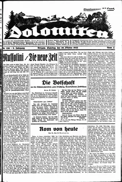 In 1925 he got permission from the Vatican to start printing a German-language newspaper again and launched Dolomiten (The Dolomites). It was first published on Christmas Day 1926.[1]