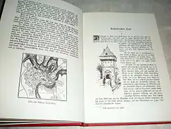 In addition to his own historical drawings, he illustrated books and magazines and wrote accounts of his travels to Budapest, Munich and Vienna or to Italy and Switzerland. His account of his stays in Paris tells how he met the famous Hungarian painter Mihály Munkácsy who subsequently invited him to the Château de Colbach and gave him an album of his sketches. He also published several illustrated works on art and contributed articles to the German press. Finally, he also painted a few watercolours including those of the castles of Bourscheid and Clervaux.[2]