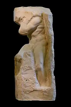The phenomenon is named after the Italian Renaissance painter, sculptor, architect, poet and engineer Michelangelo (1475-1564). Michelangelo "described sculpting as a process whereby the artist released a hidden figure from the block of stone in which it slumbered."[1] The metaphor of chipping away at a block of stone to reveal the 'ideal form' is extended, in this context, to close relationships. According to the Michelangelo phenomenon, a person will be 'sculpted' into their self-conceived ideal form by their partner. The metaphor and term was first introduced by the US psychologist Stephen Michael Drigotas (et al.) in 1999.