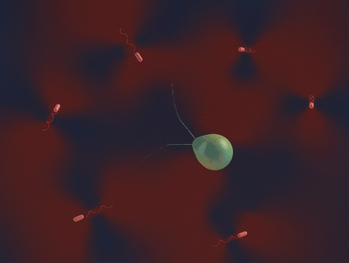 Specifically, for microorganisms that live in aqueous environments, locomotion refers to swimming, and hence the world is full of different classes of swimming microorganisms, such as bacteria, spermatozoa, protozoa, and algae. Bacteria move due to rotation of hair-like filaments called flagella, which are anchored to a protein motor complex on the bacteria cell wall.[15]