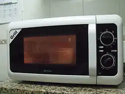 The ability of short waves to quickly heat materials and cook food had been investigated in the 1930s by Ilia E. Mouromtseff at Westinghouse, and at the 1933 Chicago World's Fair demonstrated cooking meals with a 60 MHz radio transmitter.[43] In 1945 Percy Spencer, an engineer working on radar at Raytheon, noticed that microwave radiation from a magnetron oscillator melted a candy bar in his pocket. He investigated cooking with microwaves and invented the microwave oven, consisting of a magnetron feeding microwaves into a closed metal cavity containing food, which was patented by Raytheon on 8 October 1945. Due to their expense microwave ovens were initially used in institutional kitchens, but by 1986 roughly 25% of households in the U.S. owned one. Microwave heating became widely used as an industrial process in industries such as plastics fabrication, and as a medical therapy to kill cancer cells in microwave hyperthermy.