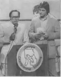 Eventually, on March 30, 1985, McMahon sold the Saturday night time slot to Jim Crockett, Jr., a Charlotte, North Carolina–based promoter who ran NWA-branded shows in the Mid-Atlantic states. Jim Crockett Promotions took over production of the Saturday television show using the same set.[2] JCP purchased Watts's promotion (by then renamed the Universal Wrestling Federation) in 1987. When JCP ran into financial difficulty, Turner Broadcasting took over the promotion in November 1988 to keep the programming on its network, naming the new subsidiary World Championship Wrestling (WCW) after the title of its then-flagship program.