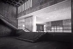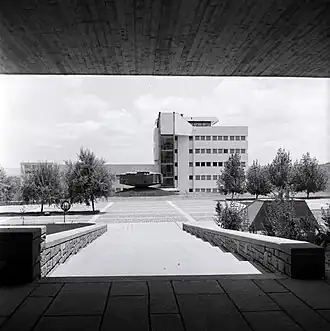 In July 1959, UNESCO expert Donald A. Redmond took over as library director. During the tenure of D. R. Kalia, the third director appointed in 1961, the idea of establishing a central library on campus was proposed and accepted in October 1961. William W. Bennett, the fourth and final UNESCO expert, began his tenure as library director in 1962. In September 1962, Paul Wasserman, Director of Libraries at Cornell University, visited Turkey to assess the development of the METU Library and prepared a report that helped secure a financial grant of $30,500 through the AID Cornell project.[53] The year 1963 was primarily dedicated to the completion of campus construction, including the architectural planning of the METU Library. The library's design, still in use today, was developed by architect Behruz Çinici. As UNESCO assistance was concluding, further support was received from CENTO, OECD, and later the United States Agency for International Development (USAID),[54] with the most significant being from USAID.[55][56][57] Out of the $4.5 million allocated to the university by USAID, Kemal Kurdaş dedicated $1.5 million to the library.[58][59][60] Dr. Robert Downs, Dean of the Library Science Department and Director of Libraries at the University of Illinois, visited and wrote a highly positive report.[53] The library also houses collections named in honor of significant figures, including the John F. Kennedy Memorial Library and a collection donated by the British Government in memory of Winston Churchill.[53] This latter donation added 1,000 volumes to the library's collection, increasing it to 50,000 volumes by the end of 1965.