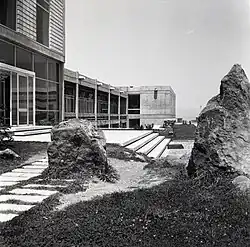 On April 26, 1961, the Board of Trustees decided on Aşağı Balgat for the new campus, and a new national competition with an international jury was organized.[41] The winning project was by Behruz Çinici and Altuğ Çinici, announced in September 1961.[42] Kemal Kurdaş, who became rector on November 22, 1961, prioritized the campus construction.[43] Initial plans included the Architecture Faculty, laboratories for the Faculty of Arts and Sciences, the rectorate building, the first section of the dining hall, and two dormitory buildings. On December 3, 1961, the first tree-planting activities at METU took place, with students planting 135,000 saplings.[44] During the initial surveys near Yalıncak Village, Kemal Kurdaş identified remnants of historical structures and artifacts, indicating the site's archaeological importance. This discovery was reported to the Ministry of National Education, the General Directorate of Antiquities and Museums, and the Ankara Archaeology Museum, now known as the Museum of Anatolian Civilizations.[45] Subsequently, archaeological excavations were initiated under the direction of archaeologist Burhan Tezcan.