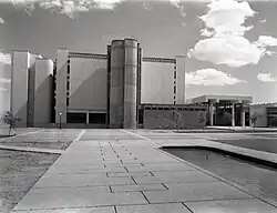 In July 1959, UNESCO expert Donald A. Redmond took over as library director. During the tenure of D. R. Kalia, the third director appointed in 1961, the idea of establishing a central library on campus was proposed and accepted in October 1961. William W. Bennett, the fourth and final UNESCO expert, began his tenure as library director in 1962. In September 1962, Paul Wasserman, Director of Libraries at Cornell University, visited Turkey to assess the development of the METU Library and prepared a report that helped secure a financial grant of $30,500 through the AID Cornell project.[53] The year 1963 was primarily dedicated to the completion of campus construction, including the architectural planning of the METU Library. The library's design, still in use today, was developed by architect Behruz Çinici. As UNESCO assistance was concluding, further support was received from CENTO, OECD, and later the United States Agency for International Development (USAID),[54] with the most significant being from USAID.[55][56][57] Out of the $4.5 million allocated to the university by USAID, Kemal Kurdaş dedicated $1.5 million to the library.[58][59][60] Dr. Robert Downs, Dean of the Library Science Department and Director of Libraries at the University of Illinois, visited and wrote a highly positive report.[53] The library also houses collections named in honor of significant figures, including the John F. Kennedy Memorial Library and a collection donated by the British Government in memory of Winston Churchill.[53] This latter donation added 1,000 volumes to the library's collection, increasing it to 50,000 volumes by the end of 1965.