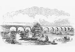 - Midland Counties Railway Viaduct, Rugby over the valley of the Avon (now Grade II listed[16]) which consisted of 11 arches of 50 feet (15.24 m) each, elevating the line 40 feet (12.2 m) above the valley floor.[11]