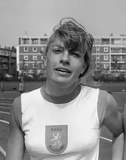 Mieke Sterk (Dutch: [ˈmikə ˈstɛr(ə)k]; born 5 January 1946) is a retired track and field athlete and politician from the Netherlands. She was part of the Dutch 4×100 m relay team that finished in fourth place at the 1968 Summer Olympics. Individually, she failed to reach the final in the 200 m event. Two years later she won a bronze medal in the pentathlon at the 1970 Universiade and finished fifth in the 60 m hurdles at the European Indoor Championships.[1] Her personal bests were 11.6 seconds in the 100 m (1968) and 23.5 seconds in the 200 m (1973). After retiring from athletics she became involved in politics and between 1994 and 1998 was a member of the Tweede Kamer of the Dutch House of Representatives.[2]