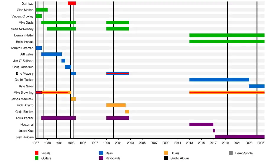 - Mike Browning – drums, lead vocals (1987–1992, 2013–present)