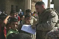 His first deployment was in November 2007 to lead a counterintelligence and human intelligence team, a time where al-Qaeda appeared to have been defeated by the Iraq War troop surge of 2007; giving "some semblance of stability in the town."[17][18] He made a back-to-back deployment from 2008, taking over from a team led by Matt Pottinger.[17] He assessed American military strategy in the Middle East and Central Asia in his role as a counterintelligence officer, and as a member of the CENTCOM assessment team.[19]