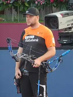 Mike Schloesser (born 15 january 1994[3] in Heerlen, Netherlands) is a compound archer from the Netherlands. In 2015, he was the first person to hit a perfect 600/600, hence his nickname Mister Perfect.[4][5] In December 2023 he surpassed Sara López as the longest-tenured world number one. Both had been in the top three since the beginning of the 2015 season.[6] Schloesser had been holding the number one position in the world ranking since 24 May 2021.[7] In March 2024 he broke the record for the longest consecutive days ranked number one.[8]