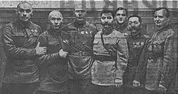 Khatskilevich (3rd from left, behind Semyon Budyonny) with a group of former senior commanders of the 1st Cavalry Army at the Seventh All-Union Congress of Soviets, 1935