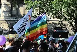 The Milano Pride is a parade held at the end of June each year in Milan, Italy, to celebrate the lesbian, gay, bisexual, transgender, asexual, intersexual and queer (LGBTQ+) [1] people and their allies. Until 2012, the event has been held each year but with a different name. Milano Pride is one of the largest gay and lesbian organized events in Italy. Its aim is to demonstrate for equal rights and equal treatment for LGBT people, as well as celebrate the pride in Gay and Lesbian Culture.[2]