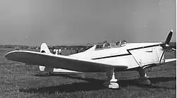 The Magister also participated in experimental wartime research, such as to evaluate a long range ground attack platform during 1941.[16] Seeking to increase the payloads of conventional medium bombers, British military planners suggested the use of a so-called 'auxiliary wing' that could be towed like a glider behind a bomber; this wing would be loaded with either additional fuel or munitions. To test this concept, a modified Magister was produced; by the time testing had reached an advanced stage, the RAF had significantly bolstered its offensive forces with heavy bombers, removing the need to deploy the auxiliary wing concept.[17] Other aircraft received experimental modifications to evaluate new equipment or aerodynamic features.[18]