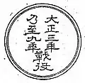Japanese participation in World War I was commemorated by medals created on November 6, 1915 by Imperial Edict No. 203.[7] Two very similar medals were issued, one for service in 1914-15 and the other for the period 1914-20. If a person earned both they could only wear the latter.[8]