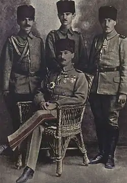 In 1908, the Young Turk Revolution seized power from the then reigning Sultan Abdülhamid II and Mustafa Kemal became a senior military figure. As one of the first members of the CUP, he played a role in the revolution of 1908. He was deployed to Tripolitanya where he unsuccessfully attempted to persuade the local Arab notables of the policies of the CUP.[1] However, in later years he became known for his opposition to, and frequent criticism of, policies pursued by the CUP leadership. Soon thereafter, Mustafa Kemal's relationship with Enver Pasha deteriorated. As a result, when Enver Pasha emerged as the foremost military leader after 1913, Mustafa Kemal was excluded from the center of power.[2]