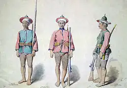 The Royal Burmese Army was a major Southeast Asian armed force between the 11th and 13th centuries and between 16th and 19th centuries. It was the premier military force in the 16th century when the Toungoo dynasty built the largest empire in the history of Southeast Asia.[1] The centuries-long warfare between Burma and Siam (1547–1855) shaped not only the history of both countries but also that of mainland Southeast Asia. In the 18th and early 19th centuries, highly militaristic Konbaung kings had built the largest empire in mainland Southeast Asia until they encountered the British in present-day northeast India.[2][3] Prior to the three Anglo-Burmese wars (1824–1885), previous existential threats to the country had come from China in the form of Mongol invasions (1277–1301) and Manchu invasions (1765–1769).