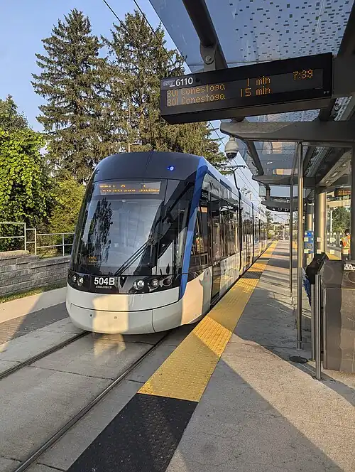 ![]() Northbound train to Conestoga station arriving at Mill station, 2024 | |||||||||||