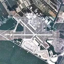 The airport covers 916 acres (371 ha) at an elevation of 85 feet (26 m). It has two runways: 10/28 is 6,002 by 150 feet (1,829 x 46 m) asphalt and 14/32 is 5,057 by 150 feet (1,541 x 46 m) concrete.[1]