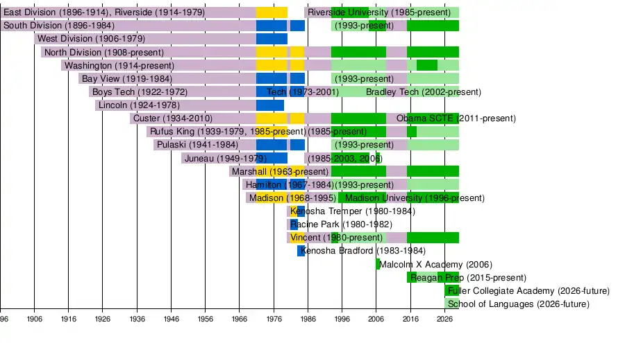 - ^ Known as Boys Technical and Trade High School from 1906-1975 and Milwaukee Tech from 1975-2002