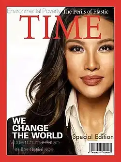 Chang displayed a fake cover of Time magazine to a videotaped January 2017 interview with journalist Mary Sit produced by Houston Community College's show, Global Outlook.[21][22] In response to the interviewer's question: "Here you are on Time magazine, congratulations! Tell me about this cover and how this came to be?" Chang represented the cover as genuine and replied: "We started using drone technology in disaster response, and so that was when the whole talk of how is technology being used to save lives in disaster response scenarios... and I suppose I brought some attention to that".[23]