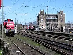 Minden (Westfalen) station (officially Minden (Westf) Bf) is a railway station in Minden. The station is located on the Hanover–Minden railway to Hanover, the Hamm–Minden railway to Hamm and the Verden–Rotenburg railway to Rotenburg an der Wümme. The train services are operated by Deutsche Bahn and WestfalenBahn. The station is also served by the Hanover S-Bahn.