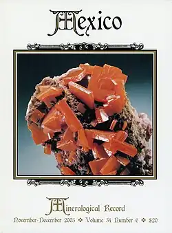 The Mineralogical Record is a mineralogy magazine, published in the United States by The Mineralogical Record Inc., a non-profit organization, with a periodicity of six issues a year, totaling approximately 700 pages. Published in English, it carries articles on topographic mineralogy, including locations around the world, and articles on specimen-oriented mineralogy. It also publishes details of the main mineral fairs and, occasionally, articles on the history of mineralogy and on museums and mineral collections. In addition to the regular editions, it occasionally includes supplementary numbers, distributed at no additional cost to subscribers, on mineral collections from specific geographical areas. The publication of the magazine is maintained by the payment of subscriptions, advertising, publication and sale of books and through donations.