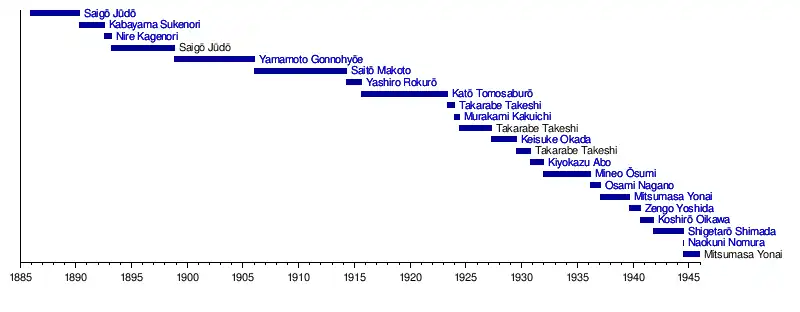 | 19 | | Koshirō Oikawa 及川 古志郎 | 5 September 1940 | 18 October 1941 | |