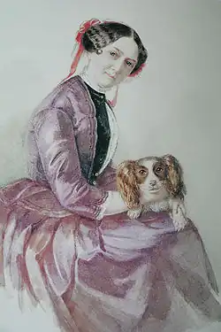 Wagner attempted to leave Minna in 1850[27] when he had an affair with the married 21-year-old Jessie Laussot, with whom he planned to elope to the Far East.[28] However Minna, together with Jessie's mother, put a stop to this plan[29] and Wagner eventually returned to Minna and for a while their relationship regained some of its original ardour. During a visit in the summer 1856, Ferdinand Praeger recorded "A picture of Minna", capturing the dynamic of their relationship: