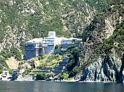 According to the colophon it was written in 1304.[3][4] The codex 928 was seen by Gregory at the Dionysiou monastery (8), in Mount Athos.[5] Currently 331 folios of the manuscript are housed at the Dionysiou monastery (56 (9)) in Athos and two folios are housed at the National Library of Russia (Gr. 322) in Sankt Petersburg.[3][4] The leaves from Petersburg previously were cataloged as minuscule 2165, they contain text of the Philippians 3:13-4:23 and Colossians 1:1-6.[3]