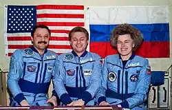 ![]() Yury Usachov, Yuri Onufrienko, Shannon Lucid Long-term Mir expeditions | |