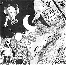 The inner sleeve features the lyrics of "Mýrin Andar" handwritten by Björk and a black-and-white child-like illustration.[2]
