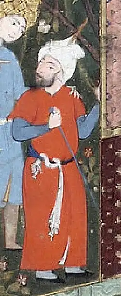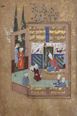 ![]() Mirza Salman Jaberi in the Būstān of Saʿdi (1579).[a] | |