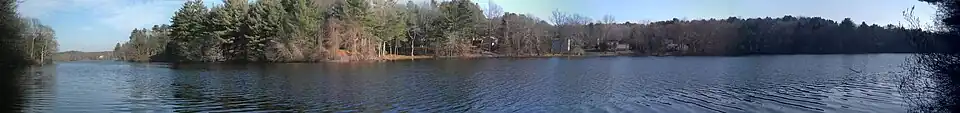 The lake is home to many wildlife species, including beavers, swans, herons, cormorants, turtles, and is a temporary habitat for Canada geese. Fish species include Largemouth bass, Chain pickerel, and Bluegill.