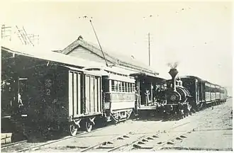 Mishima-Tamachi Station was opened on May 20, 1898 as Mishima-machi Station (三島町駅, Mishima-machi eki), the terminal station of the initial phase of line construction extending from Nanjō Station (present-day Izu-Nagaoka Station). The line was connected to the former Mishima Station (present day Shimo-Togari Station) on June 15 of the same year. On May 25, 1919 the line was electrified. The northern terminus of the line was moved to present-day Mishima Station in 1934. The station was renamed to its present name on February 1, 1956.