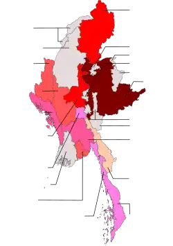 | Kyaikto | Karbra[38][ii] | 24 | 5 ft 6 in (1.68 m) | Kamayut |