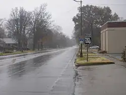 Route 571 is a two-lane highway in Carthage, Missouri, replacing a former section of U.S. Route 71 Alternate (US 71 Alt.) with the realignment of US 71. Both termini are at Interstate 49 (I-49) and US 71; its northern terminus is Business I-49 and Route 171 at the western edge of Carthage and its southern terminus is I-49/US 71 at the southern edge of Carthage.
