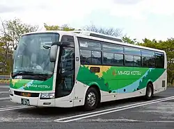 The Mitsubishi Fuso Aero Bus (kana:三菱ふそう・エアロバス) is a series of heavy-duty intercity coaches produced by the Japanese manufacturer Mitsubishi Fuso. The range was primarily unavailable with left-hand drive. However, Turkish bus maker Temsa used produce a left hand drive variant models, called Mitsubishi Maraton and Prenses (facelift) and later Safir (next generation Aero Queen), while Hyundai Motor Company produced another left hand drive variant called the Hyundai Aero. Its principal Japanese competitors are Isuzu Gala, Nissan Diesel Space Arrow and Hino S'elega.